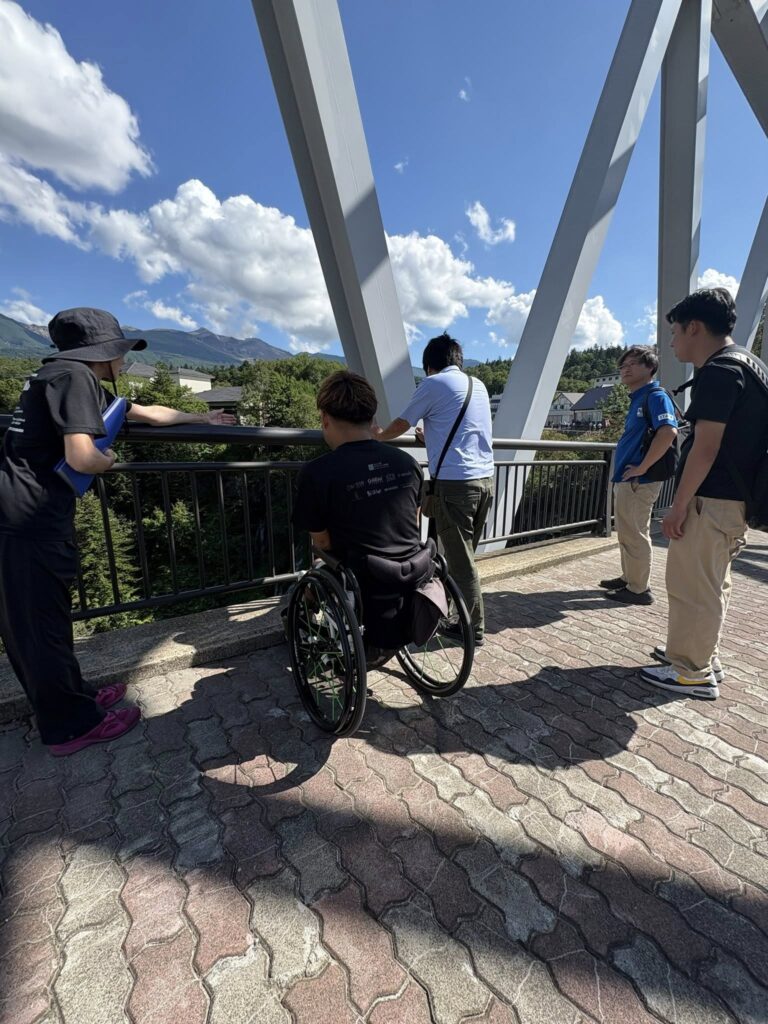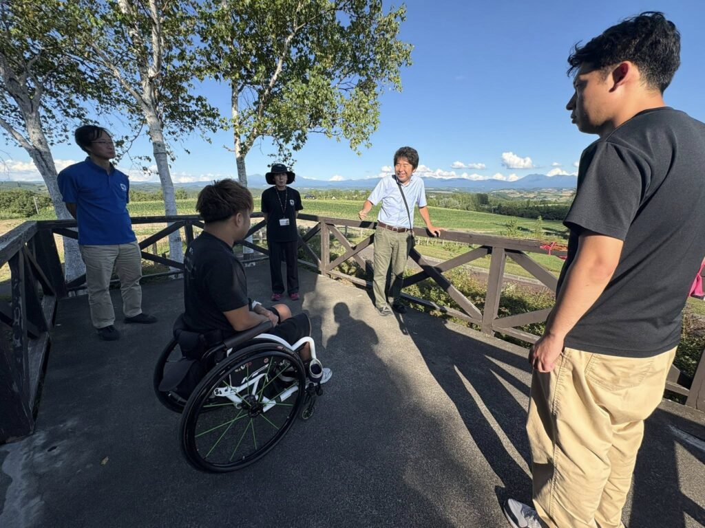【バリアフリー調査の実施】 活動報告 2025.08.132025.10.28 8/12 美瑛町にて、バリアフリー調査を行いました! 丘のまち郷土学館「美宙」、新栄の丘展望公園、 青い池ほか計5ヶ所の調査を行い、車椅子ユーザーの視点から展示物の高さ 多目的トイレの使いやすさや、その動線の確認等を行いました!また、美瑛町の歴史や 十勝岳など美瑛町にまつわることを学びました。 車椅子から見る展示物や景色、道は普段何気なく歩いて見ている私たちにとっては新鮮なものでした! 美瑛町のみならずこれからも色々な市や町でバリアフリー調査を行い 誰もが楽しめるまちづくりをしていきたいと思います!