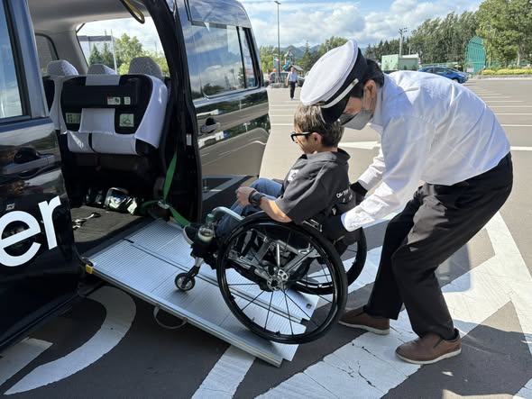 農試公園までの移動は、ジャパンタクシーを利用しました。通常では、車いすから