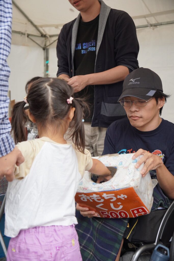 大行列で列も途切れることなく、おもちゃくじを楽しんだり、ボッチャを体験したりと素