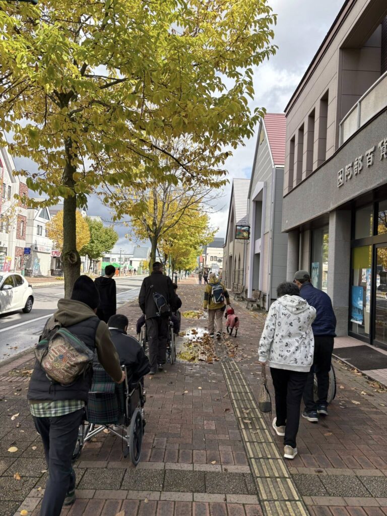 タウンウォッチングでは実際に車いすに乗って美瑛町の街を探索しました。
