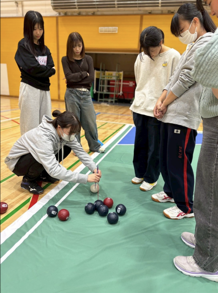 【旭川市立大学短期大学部 講義】 活動報告 2025.11.142026.01.09 11月10日 初級パラスポーツ指導員認定校である旭川市立大学短期大学部でボッチャの講義を行いました!10月28日に行ったボッチャの講義を踏まえ、今回は景品がかかった熱い戦いを繰り広げていました!ボッチャのコツを掴み、最後までどのチームが優勝するか分からない!そんな接戦が続き、見事優勝したチームには函館プリンと函館の生チョコを贈呈しました!ボッチャの講義はこれで終了ですが、次回は車いすラクビーの講義があるので、少しずつパラスポーツを知っていただくことが出来たら嬉しいです!