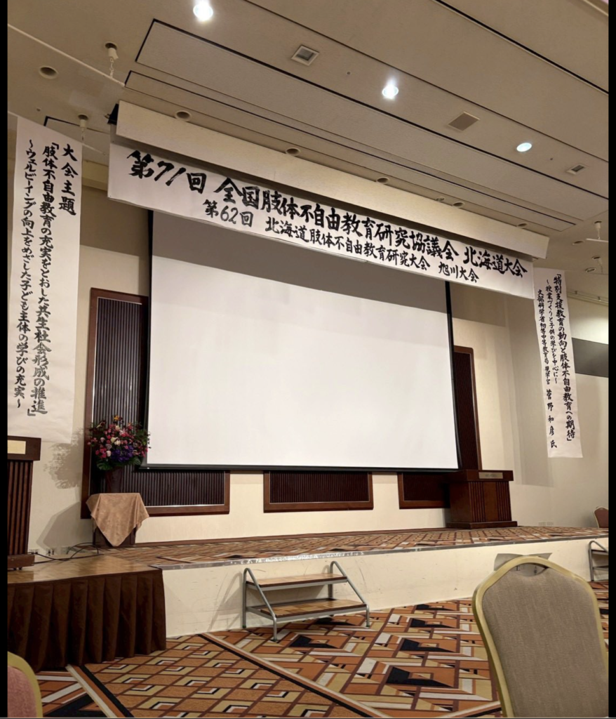 71回目となりますが、旭川市で初開催となるこの大会!この先旭川での大会はないかもしれない、全国の肢体不自由特別支援学校の教員が集ったこの貴重な場「第9分科会」にて、チーム紅蓮の取組紹介としてお話してきました。
