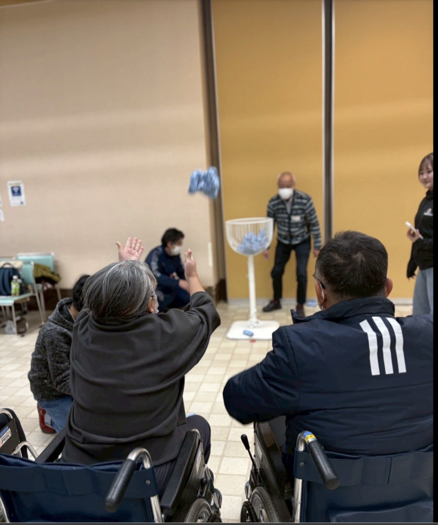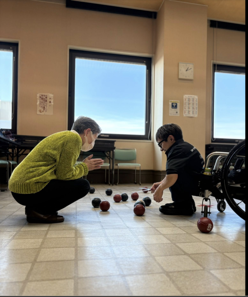 みなさんと一緒にボッチャや車いす玉入れ、アーチェリーを体験をいただきました。