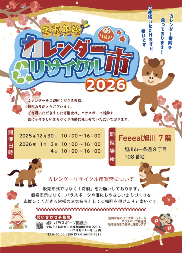 12月30日、1月3.4日の3日間feel旭川7Fで、カレンダーリサイクル市2026を開催いたしました。