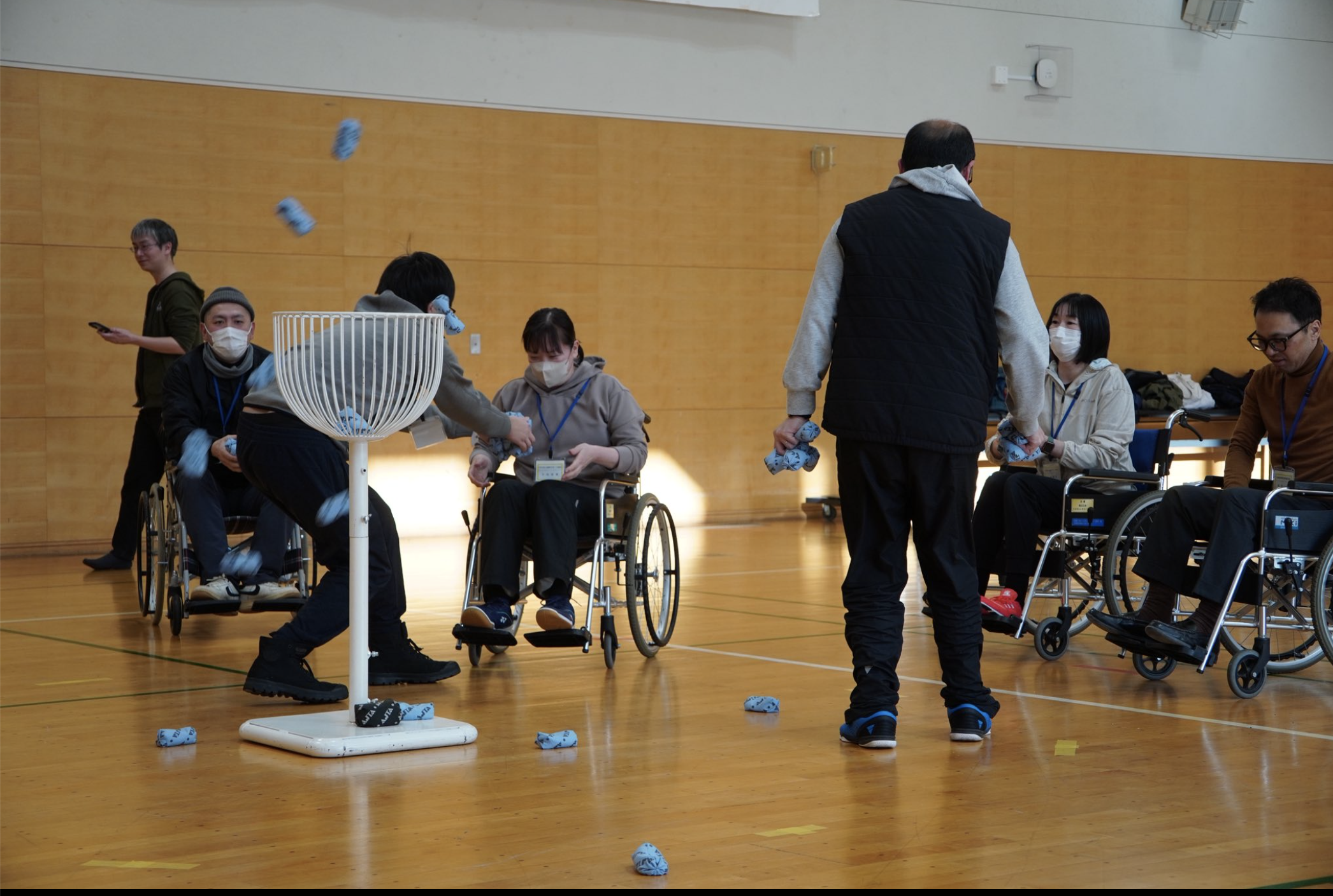 障がい者の生涯学習支援体制構築モデル事業として、障がい当事者のみならず誰もが参加できるスポーツ等の普及ができることを目的に、今回は車いす玉入れ、車いす野球、車いすリレーの体験をしていただきました!