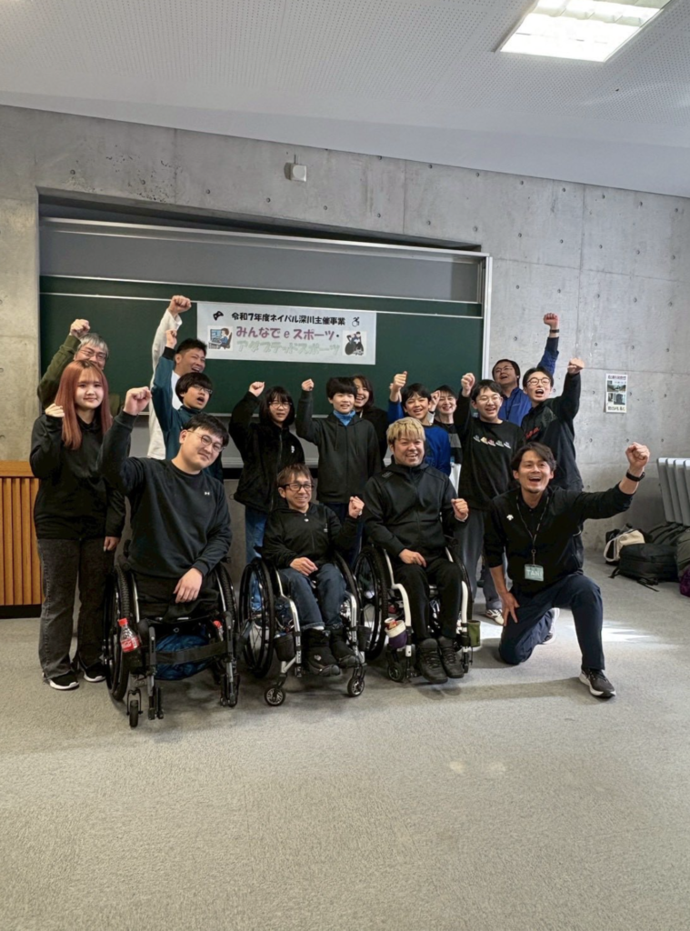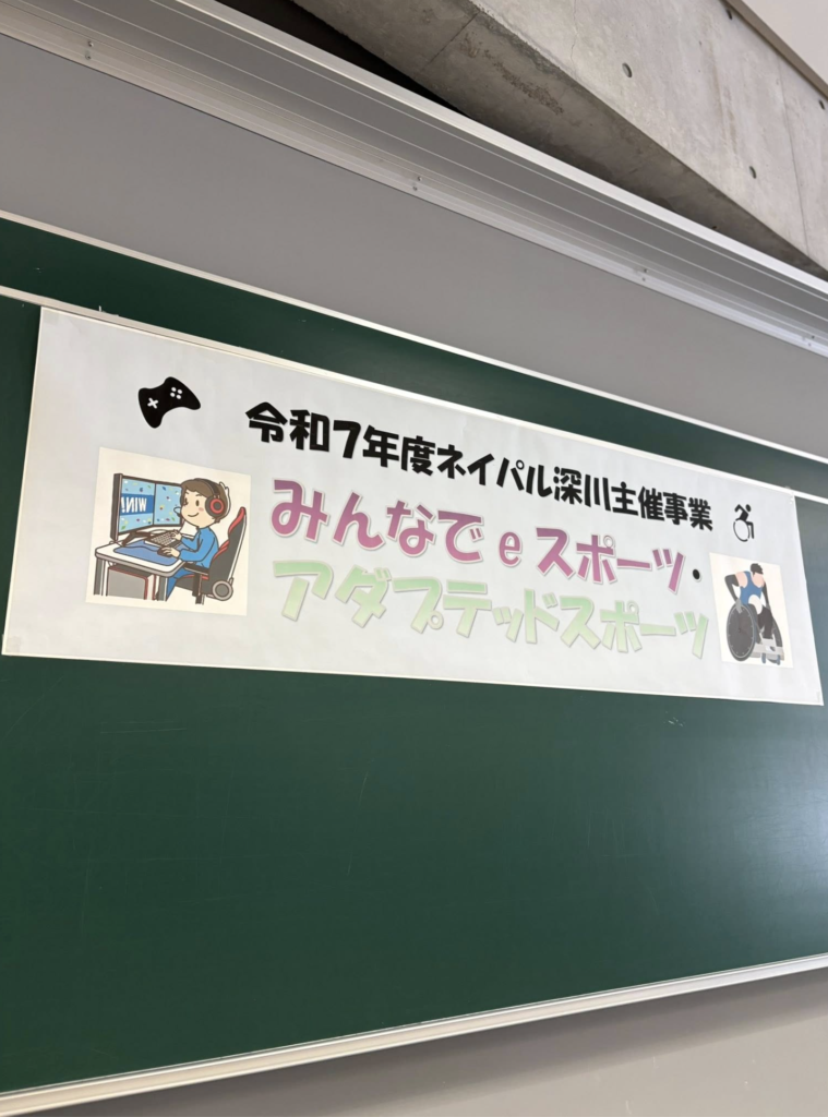 この事業は宿泊込みで、交流しながら学ぶeスポーツ、アダプテッドスポーツスポーツを体験する2日間。
