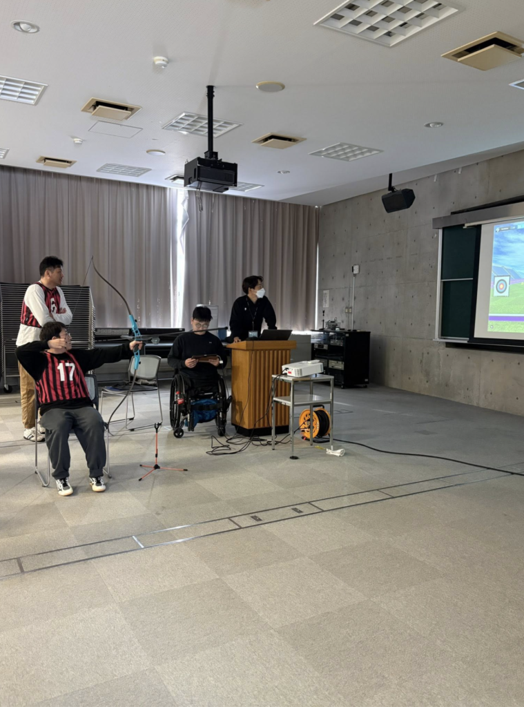 また、アーチェリーでは、画面に向けて矢を向けるバーチャルアーチェリーを