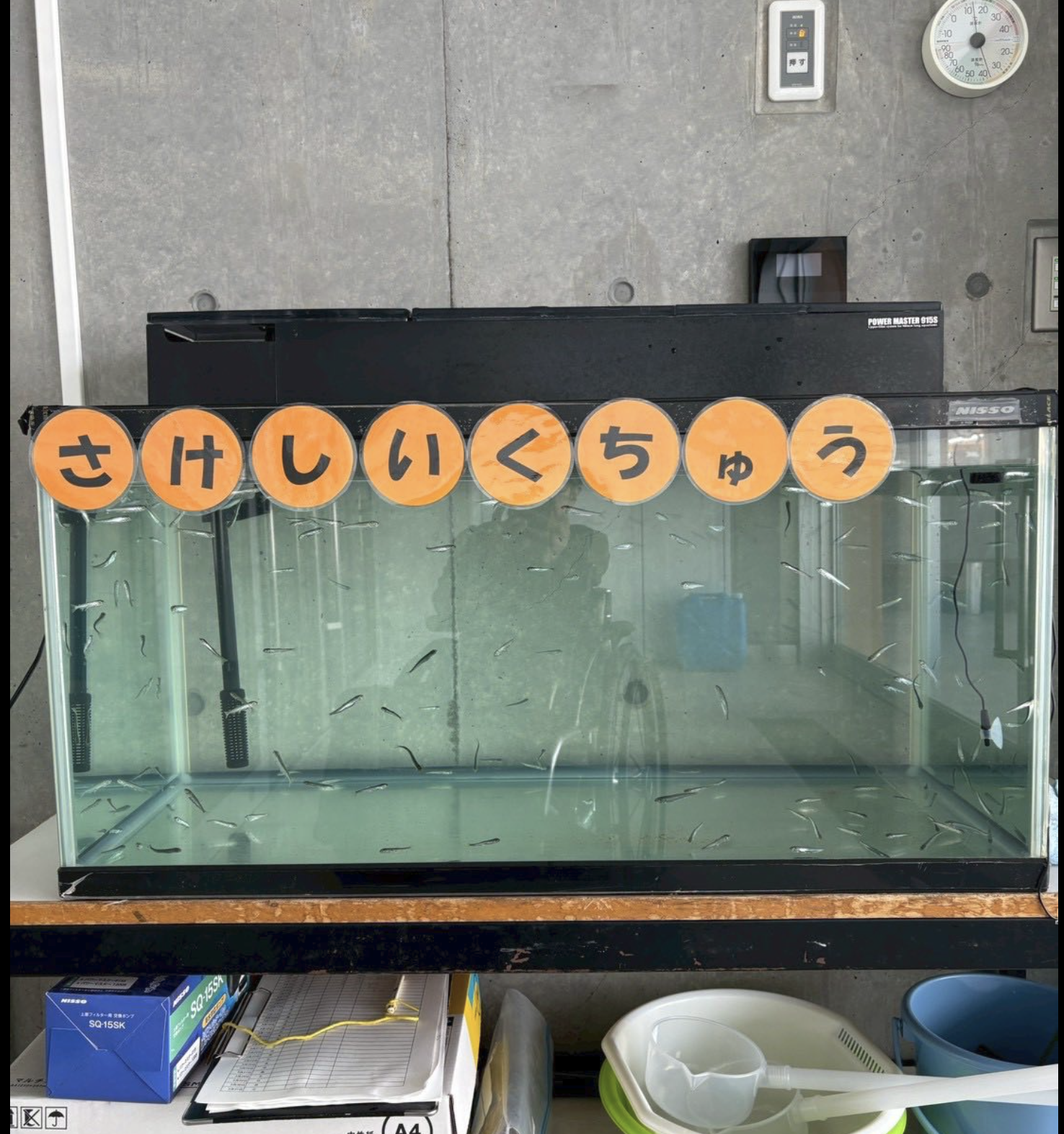 将来を考え、地域で利用できるよう、間仕切りを外し、多目的に使えるよう工夫されていたり、サケの稚魚を飼育し、地域の方と一緒に川へ放流するそうです。